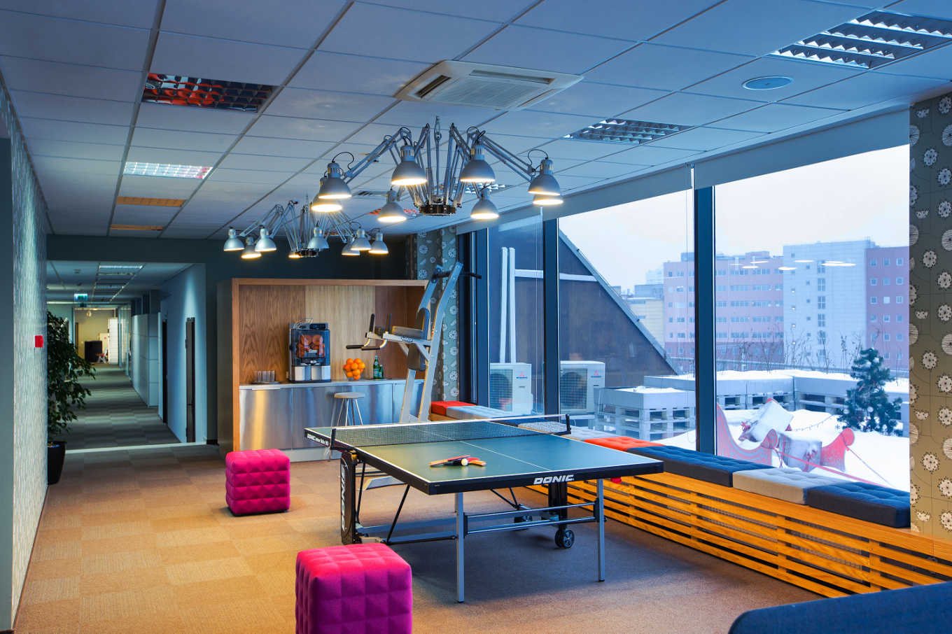 Свет в зоне отдыха должен быть мягким и приятным. Использование различных источников света, таких как настенные светильники, торшеры или настольные лампы, позволит создать многоуровневое освещение, которое поможет создать уют. Также стоит учитывать естественное освещение. Расположите зону отдыха рядом с окнами, чтобы сотрудники могли наслаждаться солнечным светом в течение дня — это благоприятно скажется на их настроении и самочувствии.